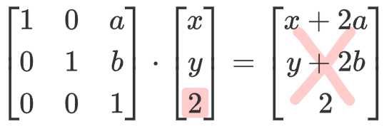 이동 변환은 $2\times 2$ 정방행렬 곱셈으로는 구현이 불가능하다.