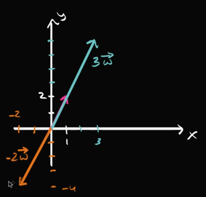 - 선형 종속관계의 두 벡터는 평행한 모양이며 한 벡터의 스칼라 곱 적용한 결과와 같다